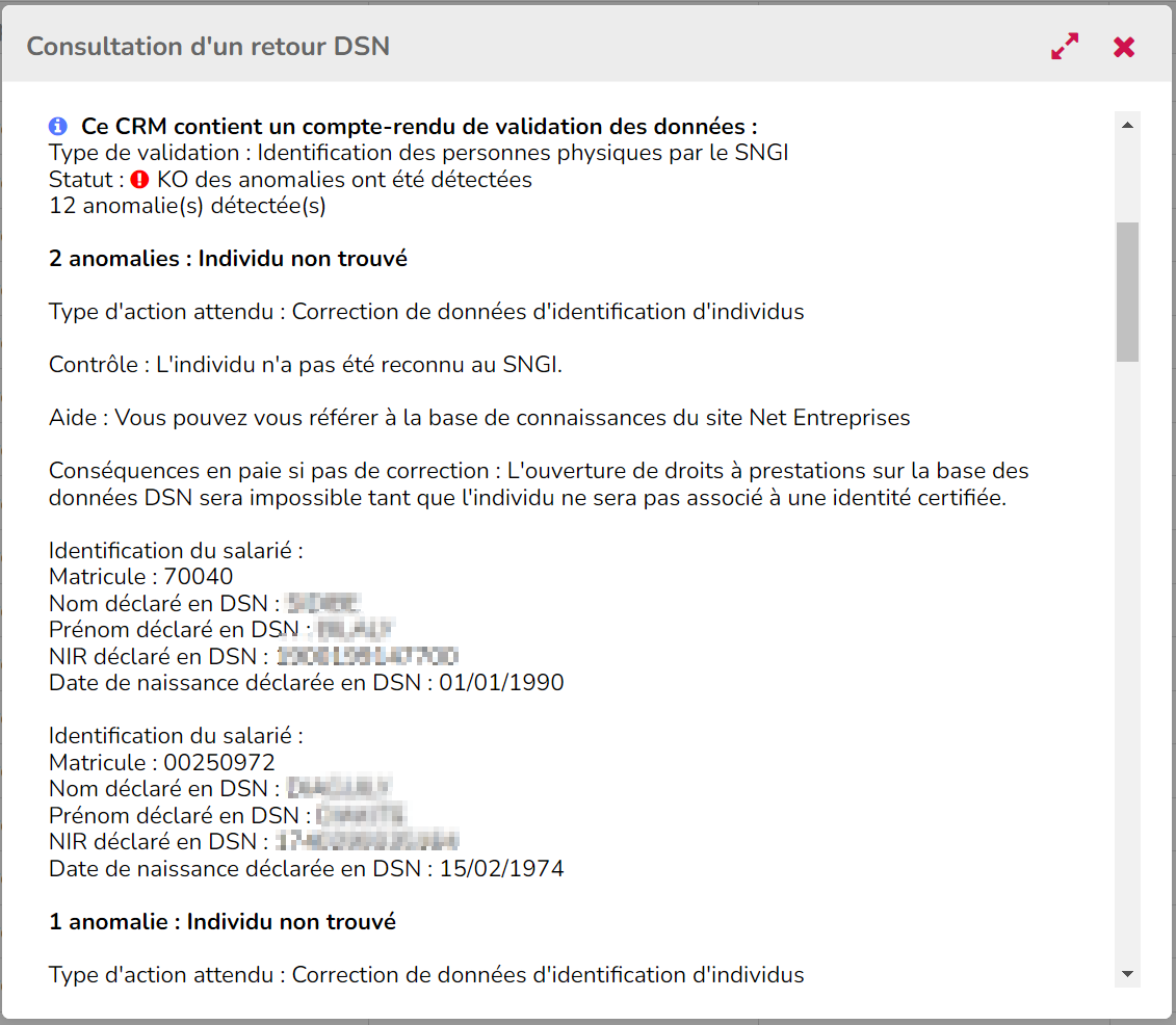 Le CRM 121 Identités est un nouveau CRM DSN restituant les informations d'identification des salariés par le SNGI (voir Nouveauté du 29/08/2023 : consultation des CRM DSN de nature 121 Identité).