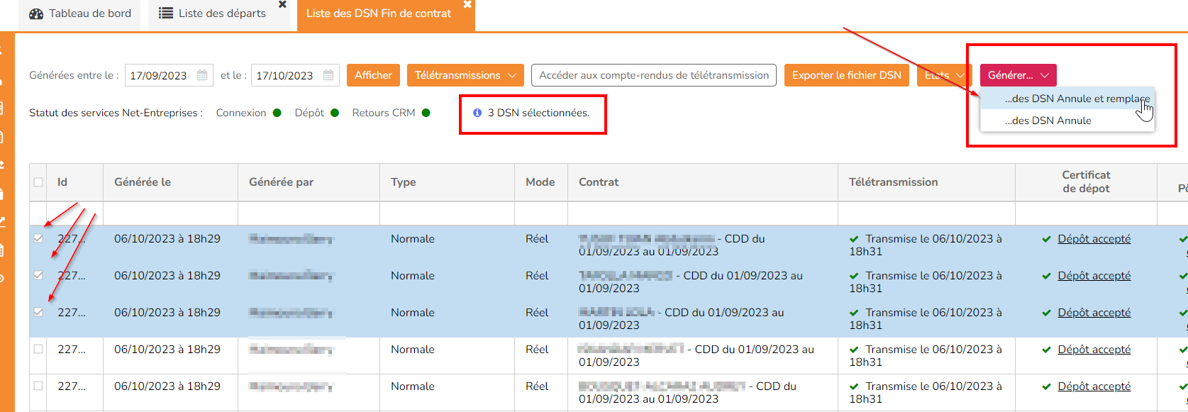 Il est désormais possible de générer des DSN Fin de Contrat de type "Annule" ou "Annule et remplace" en masse.