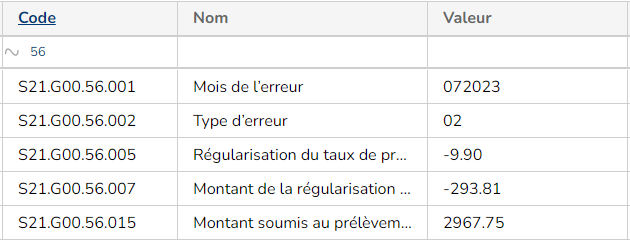 restitue les informations déclarées en segment S21.G00.56