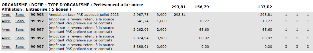 Désormais, les régularisations de prélèvement à la source sont affichées dans les différents états.