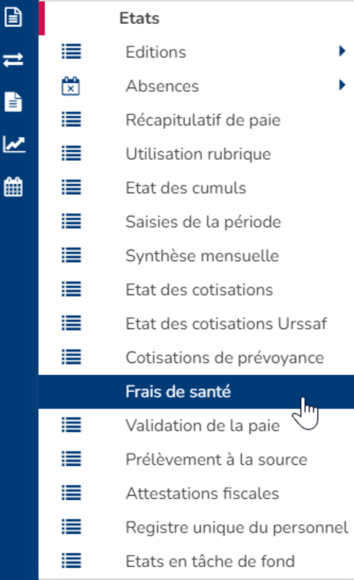 Dans le menu Etats, un nouvel état est disponible : l'état Frais de santé.