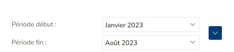 Par exemple, si l'on sélectionne "Année en cours", les périodes correspondantes (mois de janvier de l'année en cours, jusqu'au mois courant, qui est août 2023 dans cet exemple) sont automatiquement sélectionnées :